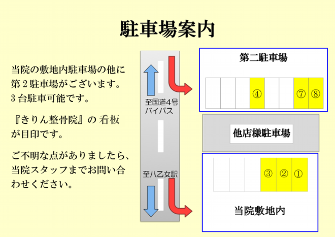 ■ 駐車場は当院敷地内に3台の他、第2駐車場に3台完備しております。